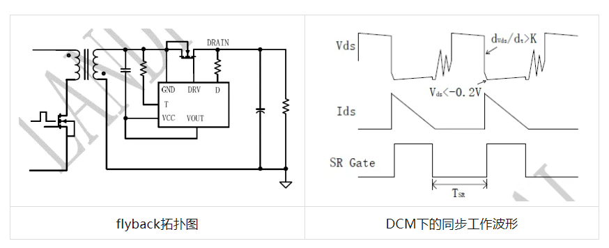 当原边PWM驱动为高电平时,副边同步整流MOS的Vds电压升高,这时候驱动SR必须关闭,否则会发生原副边直通,导致SR或PWM的MOS管损坏。