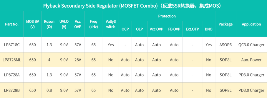 芯茂微 LP8728是一款适合于副边控制反激应用的PWM控制器,集成 650V 高压 MOSFET。